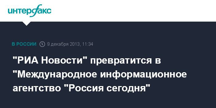 "РИА Новости" превратится в "Международное информационное агентство "Россия сегодня"