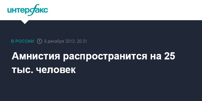 Москва. 9 декабря. INTERFAX.RU - Под амнистию, инициированную в понедельник президентом РФ, подпадет около 25 тыс. человек, сообщил журналистам вице-спикер Госдумы, руководитель фракции "Единая Россия" Владимир Васильев.