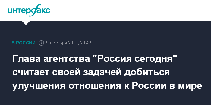 Глава агентства "Россия сегодня" считает своей задачей добиться улучшения отношения к России в мире