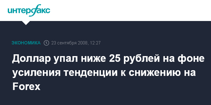 Доллар упал ниже 25 рублей на фоне усиления тенденции к снижению на Forex