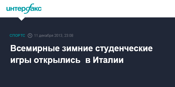 Москва. 11 декабря. INTERFAX.RU - В итальянском городе Трентино в среду вечером официально открылись Всемирные зимние студенческие игры.