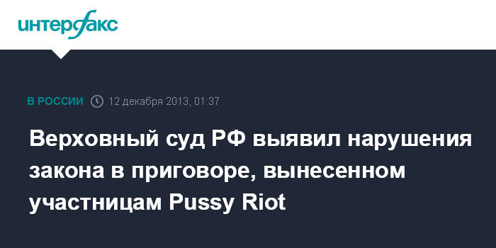 Москва. 12 декабря. ИНТЕРФАКС - Верховный суд РФ выявил нарушения закона в приговоре, вынесенном в отношении участниц панк-группы Pussy Riot: не учтены смягчающие обстоятельства, не указаны мотивы преступления, не рассмотрен вопрос об отсрочке наказания.