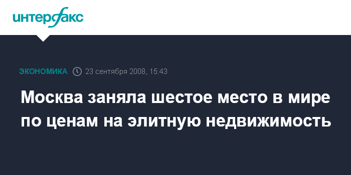 Москва входит в число 10 городов мира с самой дорогой недвижимостью, занимая 6-е место и уступая Монако, Лондону, Кап-Ферра (Франция), Куршавелю и Нью-Йорку. Средняя стоимость элитного жилья во II квартале текущего года выросла на 18% по сравнению с аналогичным периодом 2007-го и составила 17 тыс. евро за квадратный метр.