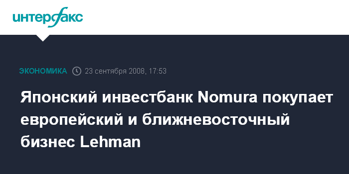 Японский инвестбанк Nomura покупает европейский и ближневосточный бизнес Lehman