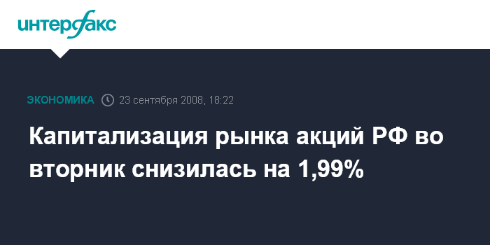 Капитализация рынка акций РФ во вторник снизилась на 1,99%