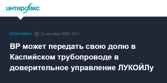 ВР может передать свою долю в Каспийском трубопроводе в доверительное управление ЛУКОЙЛу