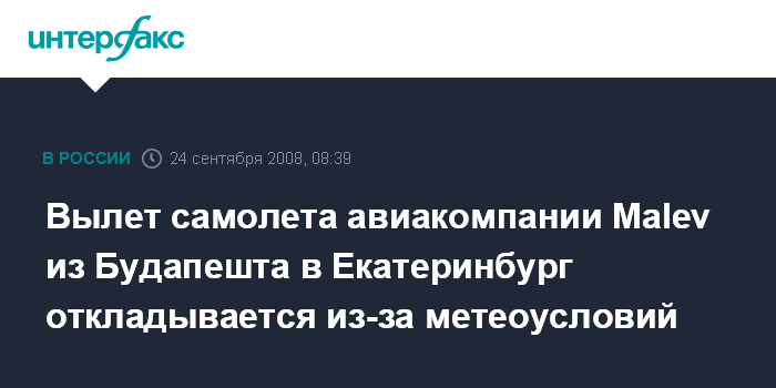 Вылет самолета авиакомпании Malev из Будапешта в Екатеринбург откладывается из-за метеоусловий