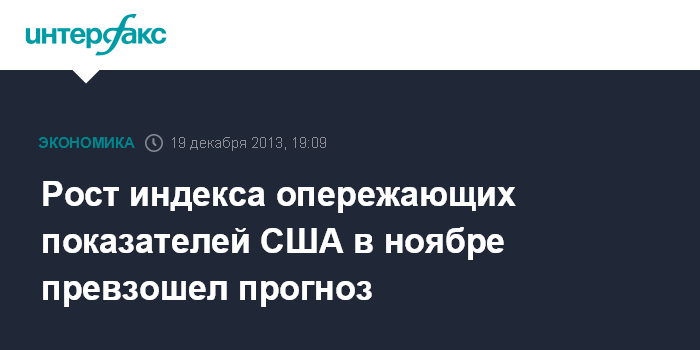 19 декабря. FINMARKET.RU - Индекс опережающих экономических показателей США вырос в ноябре 2013 года на 0,8%, свидетельствуют данные исследовательской организации Conference Board, которая рассчитывает показатель.
