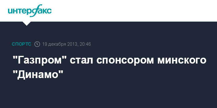 Москва. 19 декабря. INTERFAX.RU - Российская компания "Газпром" стала спонсором минского хоккейного клуба "Динамо", сообщил генеральный директор ХК Максим Субботкин.