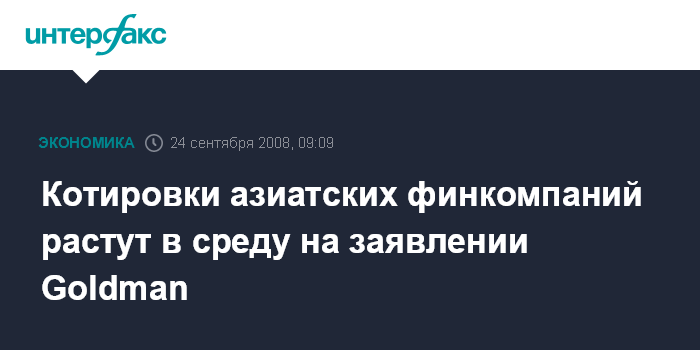 Котировки азиатских финкомпаний растут в среду на заявлении Goldman