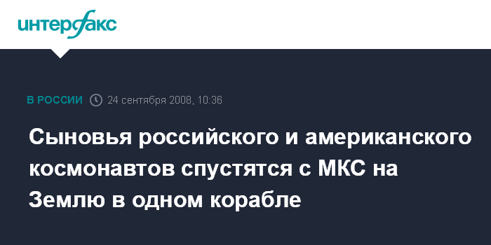 "Такого еще не было в истории космонавтики, чтобы две династии, два сына американского и российского космонавтов спускались вместе в одном корабле", - сказал Перминов, добавив, что с удовольствием работал бы с династиями, если бы сыновья всех космонавтов хотели стать космонавтами.