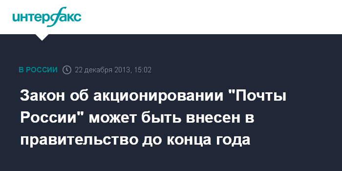Закон об акционировании "Почты России" может быть внесен в правительство до конца года
