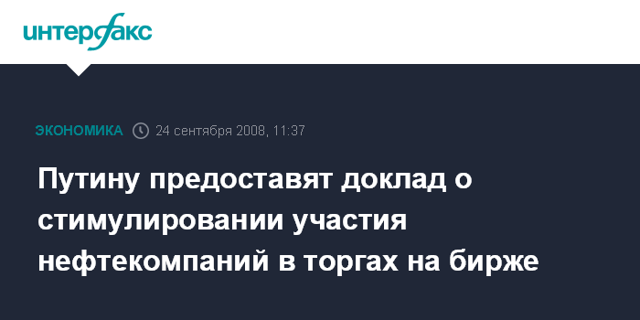 Путину предоставят доклад о стимулировании участия нефтекомпаний в торгах на бирже