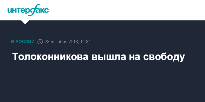 Москва. 23 декабря. INTERFAX.RU - Надежда Толоконникова освобождена по амнистии.