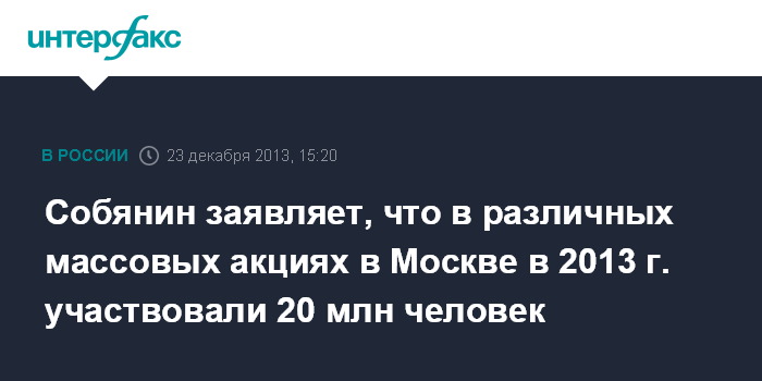Собянин заявляет, что в различных массовых акциях в Москве в 2013 г. участвовали 20 млн человек