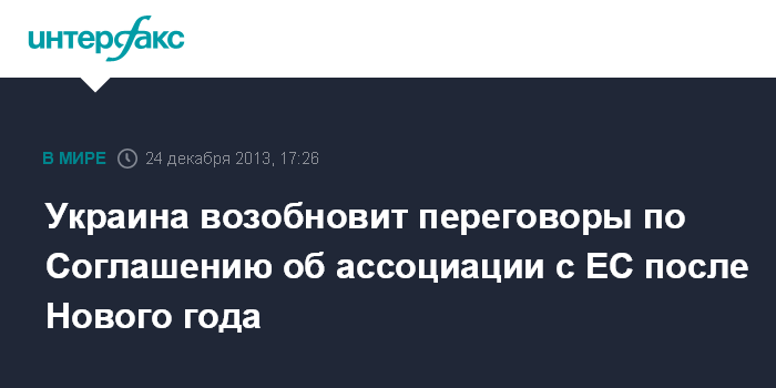 Москва. 24 декабря. INTERFAX.RU - Украина возобновит переговоры по с Европейским Союзом по перспективе подписания Соглашения об ассоциации после новогодних праздников, заявляет министр иностранных дел Леонид Кожара.