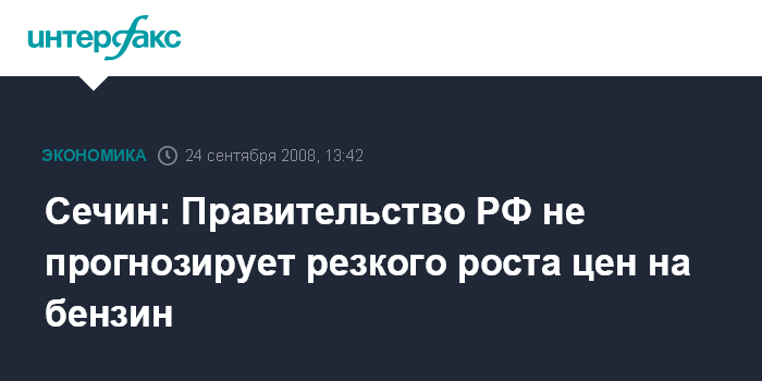Сечин: Правительство РФ не прогнозирует резкого роста цен на бензин