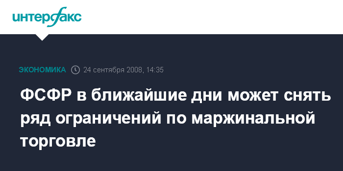 Москва. 24 сентября. INTERFAX.RU - Федеральная служба по финансовым рынкам (ФСФР) в ближайшие дни может снять ряд ограничений на заключение маржинальных сделок, сообщил журналистам глава ФСФР Владимир Миловидов.