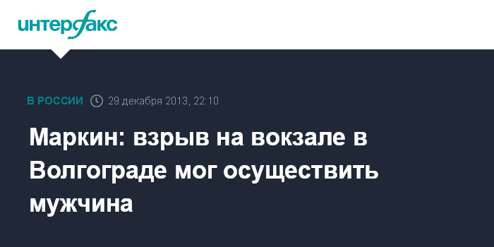 Маркин: взрыв на вокзале в Волгограде мог осуществить мужчина