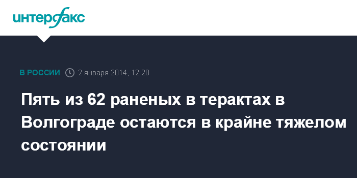 Пять из 62 раненых в терактах в Волгограде остаются в крайне тяжелом состоянии