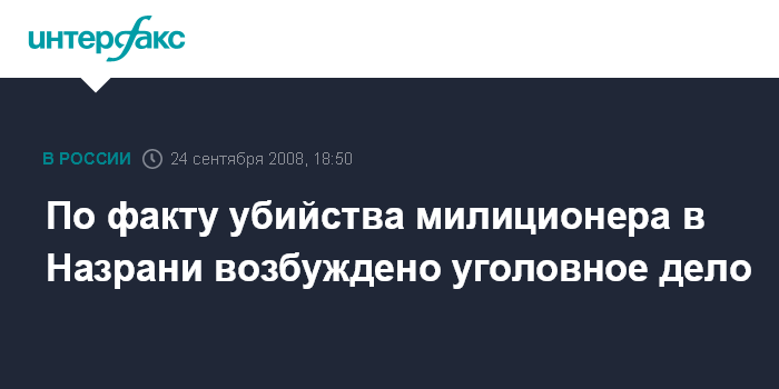 Москва. 24 сентября. INTERFAX.RU - Возбуждено уголовное дело по факту обстрела поста милиции на федеральной трассе "Кавказ", на перекрестке между Назранью и Магасом, в результате которого погиб сотрудник милиции.