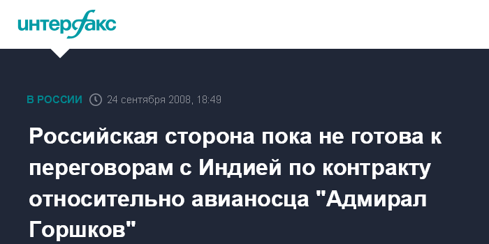 Российская сторона пока не готова к переговорам с Индией по контракту относительно авианосца "Адмирал Горшков"