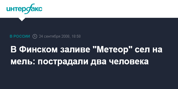 Москва. 24 сентября. INTERFAX.RU - В Петербурге в акватории Финского залива в среду село на мель судно на подводных крыльях "Метеор", на борту которого находились 93 человека, сообщили "Интерфаксу" в главном управлении МЧС по городу.