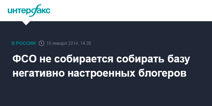 Ранее в понедельник в некоторых СМИ появилась информация о том, что ФСО с этого года начнет проводить ежедневный мониторинг публикаций всех российских блогеров на предмет их отношения к власти. Согласно публикации, силовики создадут специальную базу негативно настроенных граждан, которые размещают на своих интернет-ресурсах публикации оппозиционной направленности.