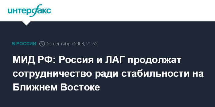 "Было условлено, что в предстоящий период Россия и ЛАГ продолжат активно взаимодействовать в интересах стабилизации обстановки на Ближнем Востоке, коллективного поиска решений острых проблем региона на основе строгого соблюдения всеми сторонами общепризнанных норм международного права", - сказано в сообщении.