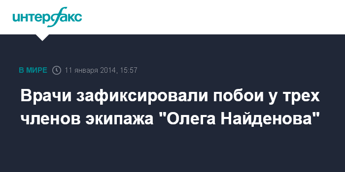 Москва. 11 января. INTERFAX.RU - Врачи, обследовавшие в субботу экипаж задержанного военными Сенегала российского рыболовного траулера "Олег Найденов", обнаружили следы побоев у трех человек, сообщили "Интерфаксу" в Росрыболовстве со ссылкой на представителя ведомства в Сенегале Александра Бирюкова. "Это несмотря на то, что с момента вооруженного захвата судна прошло уже больше недели", - отметили в ведомстве.