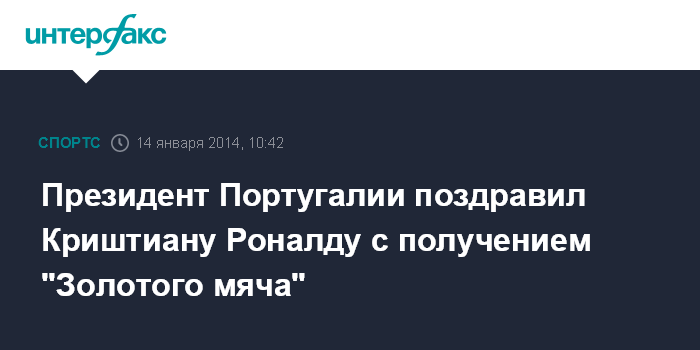 Москва. 14 января. INTERFAX.RU - Президент Португалии Анибал Каваку Силва поздравил капитана национальной сборной Криштиану Роналду с вручением "Золотого мяча".