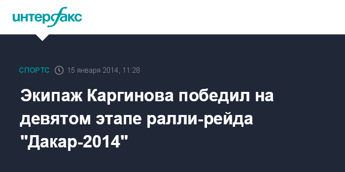 Экипаж Каргинова победил на девятом этапе ралли-рейда "Дакар-2014"