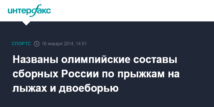 Москва. 16 января. INTERFAX.RU - Президиум совета Федерации прыжков на лыжах с трамплина и лыжного двоеборья России в четверг назвал составы сборных команд России для участия в зимних Олимпийских Играх в Сочи.