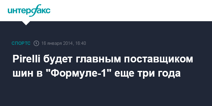 Москва. 16 января. INTERFAX.RU - Компания Pirelli объявила о продлении контракта на поставку шин командам "Формулы-1". Соглашение, рассчитанное на три сезона, вступает в силу в 2014 году, сообщила пресс-служба компании.