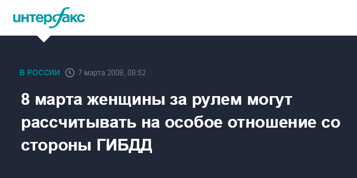 "По традиции в этот праздник, остановив автомобиль, за рулем которого дама, сотрудники ГИБДД обязательно поздравят ее с праздником, а в случае незначительного нарушения правил дорожного движения, ограничатся устным замечанием и пожелают быть в будущем повнимательнее", - сказал А.Чекалин.