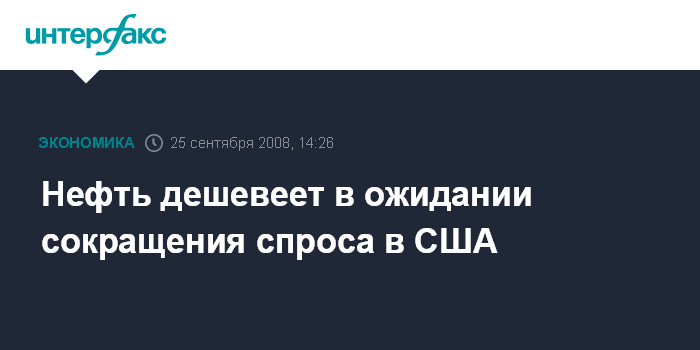 Лондон. 25 сентября. INTERFAX.RU - Нефть дешевеет в ожидании сокращения спроса на топливо в США, сообщает агентство Bloomberg.
