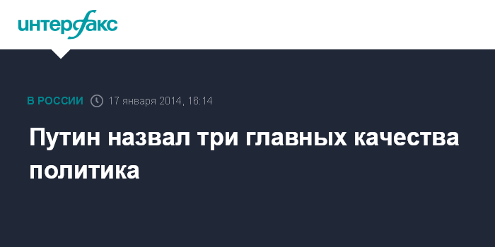 Москва. 17 января. INTERFAX.RU - Президент РФ Владимир Путин назвал три качества, которыми, по его мнению, должен обладать политический деятель.