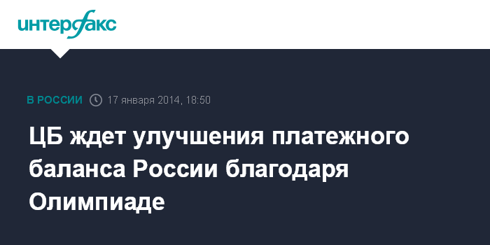 Москва. 17 января. INTERFAX.RU - Проведение Олимпиады в Сочи может благоприятно отразиться на состоянии платежного баланса РФ в первой половине 2014 года, полагают в Банке России.