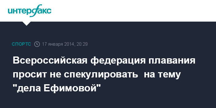 Всероссийская федерация плавания просит не спекулировать на тему "дела Ефимовой"