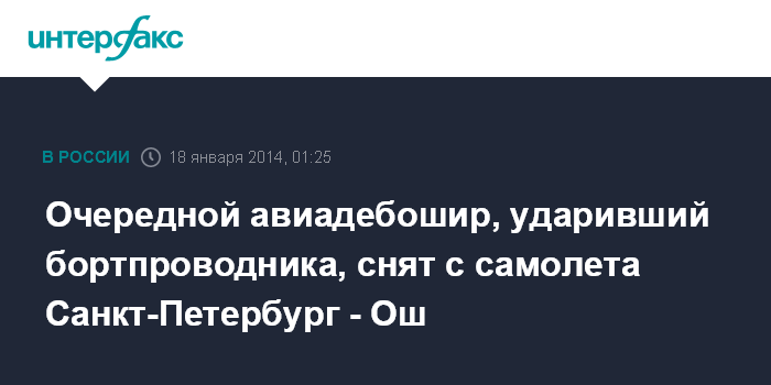 Очередной авиадебошир, ударивший бортпроводника, снят с самолета Санкт-Петербург - Ош