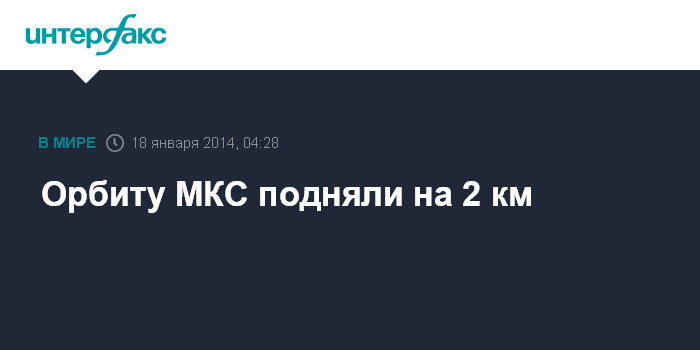 Москва. 18 января. INTERFAX.RU - Орбиту Международной космической станции (МКС) в субботу ночью подняли на два километра с помощью грузового корабля "Прогресс М-21М", сообщили "Интерфаксу-АВН" в Роскосмосе.