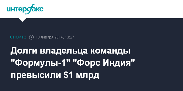 Долги владельца команды "Формулы-1" "Форс Индия" превысили $1 млрд