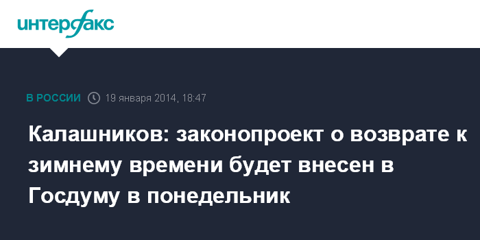 Москва. 19 января. INTERFAX.RU - Почти четверть депутатов Госдумы уже поставили свои подписи под проектом закона о возврате к зимнему, а точнее - к астрономическому времени, и в понедельник документ будет внесен в парламент, сообщил глава думского комитета по охране здоровья Сергей Калашников. "Под нашим проектом закона подписались более ста депутатов (всего их в Думе 450 - ИФ); в понедельник мы официально внесем его на обсуждение Государственной Думы", - сказал "Интерфаксу" в воскресенье С.Калашников.