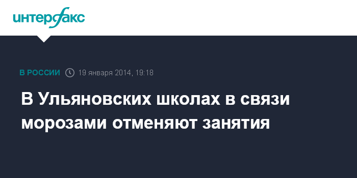Москва. 19 января. INTERFAX.RU - Министерство образования и науки Ульяновской области в связи с сильными морозами рекомендует отменить занятия в школах с 1 по 4 класс, а в муниципальных образованиях, расположенных на северо-западе региона - по 8 класс включительно.