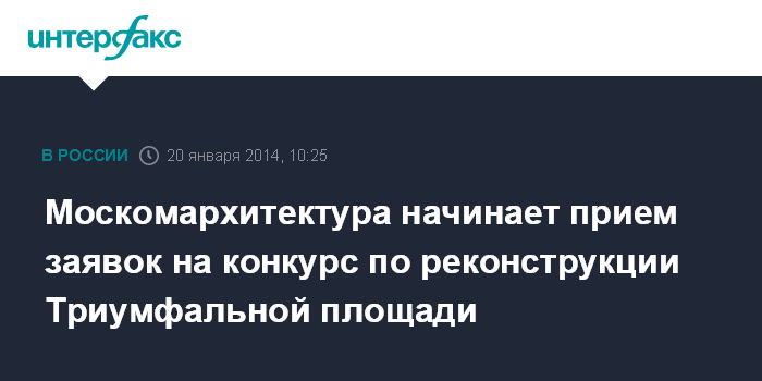 Москва. 20 января. INTERFAX.RU - Москомархитектура в понедельник начинает прием заявок для участия в конкурсе на архитектурно-градостроительную концепцию комплексной реконструкции Триумфальной площади, сообщили "Интерфаксу" в пресс-службе комитета.