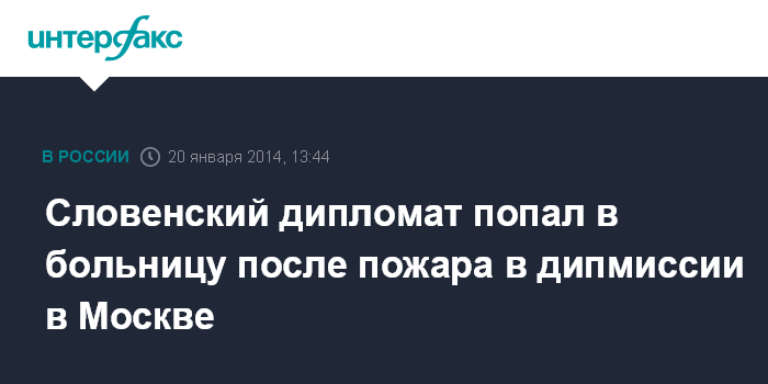 Москва. 20 января. INTERFAX.RU - При возгорании в посольстве Словении в Москве пострадал дипломат экономического отдела дипмиссии, сообщил "Интерфаксу" источник в правоохранительных органах.