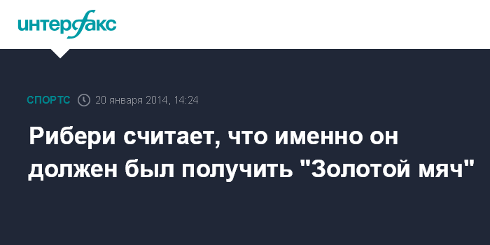 Москва. 20 января. INTERFAX.RU - Полузащитник "Баварии" Франк Рибери считает, что именно он заслужил "Золотой мяч" по итогам 2013 года.