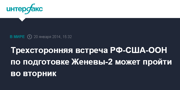Москва. 20 января. INTERFAX.RU - Трехсторонняя встреча РФ-США-ООН по подготовке международной конференции "Женева-2" может состояться во вторник, заявил замглавы МИД России Геннадий Гатилов.