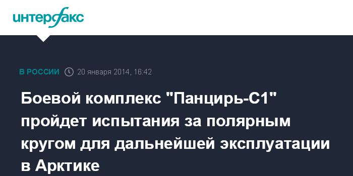 Боевой комплекс "Панцирь-С1" пройдет испытания за полярным кругом для дальнейшей эксплуатации в Арктике