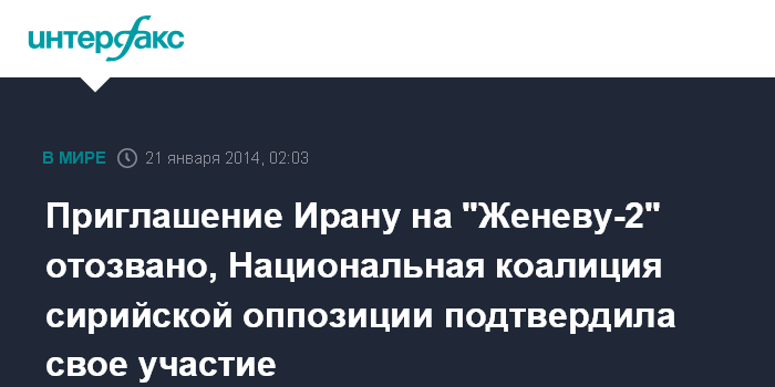 Приглашение Ирану на "Женеву-2" отозвано, Национальная коалиция сирийской оппозиции подтвердила свое участие